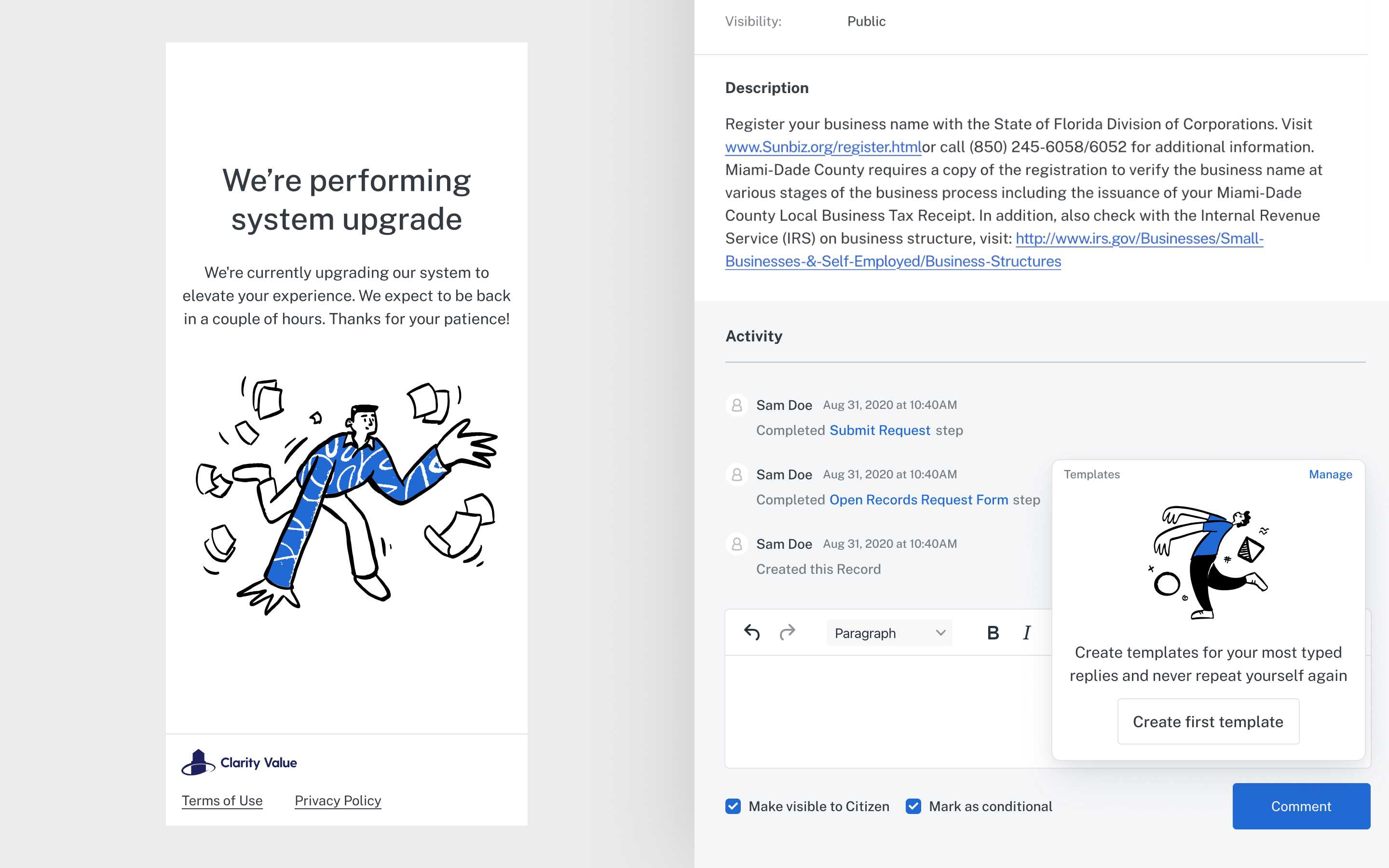 clarity value — streamlining U.S. government workflows, [1→∞], lead product designer
