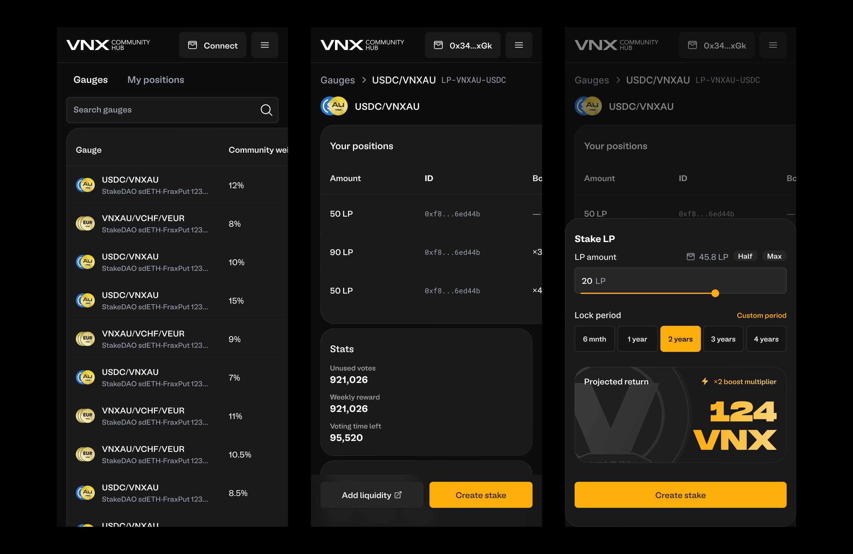 vnx — creating liquidity provision and voting/governance tools for biggest euro stablecoin, [0→1], founding product designer